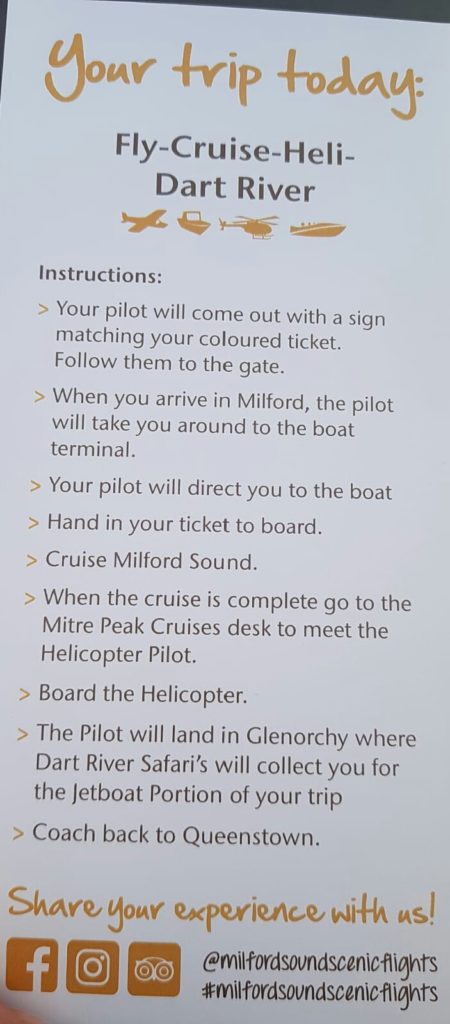 0600 aufstehen, 0800 Flug zum Milford Sound & Bootstour durch den Fjord. Dann mit dem Heli nach Glenorchy und dort mit dem Dart River Jet Boat. What an amazing day!